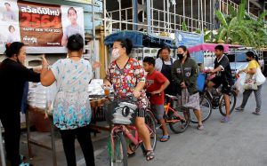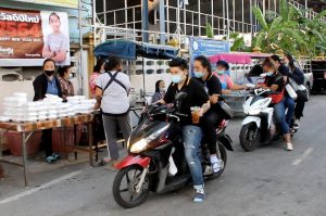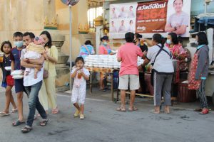 เมื่อเวลา 16.00 น.วันที่ 1 ม.ค.64 ที่วัดศรีจันทร์ประดิษฐ์ ตำบลบางปูใหม่ อำเภอเมืองสมุทรปราการ พระมหาสมิทธ์ โชติโก เจ้าอาวาสวัดศรีจันทร์ประดิษฐ์ ร่วมกับอุบาสก อุบาสิกา เหล่าบรรดาแม่ครัว แห่งวัดศรีจันทร์ประดิษฐ์ จัดทำข้าวกล่อง จำนวน 500 กล่อง ประกอบไปด้วยเมนู ข้าวพัดพริกแกงไก่ ข้าวผัดพริกเครื่องในไก่ ข้าวไก่กระเทียม ข้าวกระเพราะหมูสับ ข้าวไข่เจียว และน้ำลำไย มาแจกให้กับประชาชน โดยมี ชาวชุมชนคลองคอต่อ และกลุ่มผู้ใช้แรงงานทั้งชาวไทยและชาวต่างด้าว ที่ไม่สามารถเดินทางไปเที่ยวหรือเดินทางกลับภูมิลำเนาได้ ในช่วงเทศกาลปีใหม่ ต่างสวมใส่หน้ากากอนามัย เดินทางมารับข้าวกล่องกันเป็นจำนวนมาก