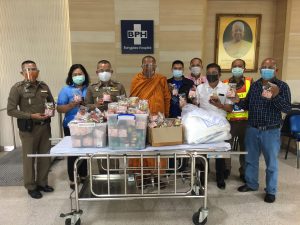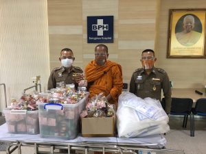 เมื่อเวลา15.00 น.ของวันที่ 5 มกราคม 2564 ที่โรงพยาบาลบางพลี “พระครูแจ้”พระครูปลัดสุวัฒนศีลคุณ เจ้าอาวาสวัดบางพลีใหญ่กลาง พร้อมพันตำรวจเอก วิโรจน์ ตัดโส ผู้กำกับการสถานีตำรวจภูธรบางพลี และข้าราชการตำรวจ สภ.บางพลี มอบสื้อกาวน์ผ่าตัดปลอดเชื้อ (Sterile Surgical Gown)จำนวน 15 ชุดให้แพทย์ พยาบาล และบุคลากรทางการแพทย์ ใช้ในการปฏิบัติหน้าที่ในการรักษาตรวจคัดกรองป้องกันผู้ป่วย ในช่วงสถานการณ์การแพร่ระบาดของเชื้อไวรัส covid-19 พร้อมนำเครื่องดื่มแบรนด์รังนก ที่ได้รับถวายจากญาติโยมเป็นจำนวนมาก มาบรรจุใส่ถุงพร้อมใส่มอบเงินให้อีกถุงละ 100 บาท จำนวน 150 ชุดเพื่อให้ผู้ป่วยที่นอนพักรักษาตัวเป็นขวัญกำลังใจ โดยมีนายแพทย์ พิเชษฐ พัวพันกิจเจริญ ผู้อำนวยการโรงพยาบาลบางพลี คณะผู้บริหาร แพทย์ พยาบาล บุคลากรทางการแพทย์ ร่วมถวายการต้อนรับ