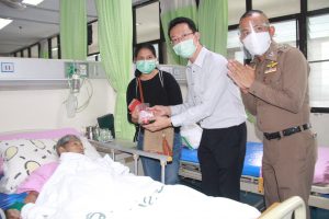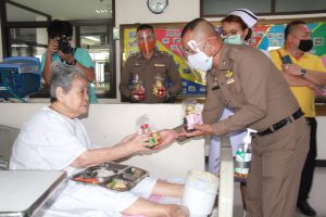 พระครูแจ้ ผู้ให้ สร้างขวัญกำลังใจให้แพทย์ พยาบาล และมอบของขวัญผู้ป่วยโรงพยาบาลบางพลี