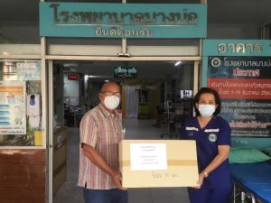 โรงพยาบาลบางบ่อ จำนวน 3,000 ชิ้น และในวันที่ 9 ม.ค. 64 จะนำไปมอบให้กับ สภ. บางบ่อ สภ.บางเสาธง สภ.คลองด่าน จำนวน 4,500 ชิ้น