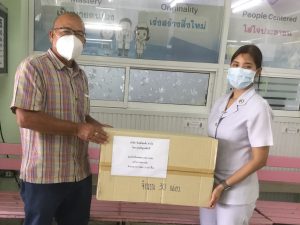 บริษัท ทิพย์โฮลดิ้ง จำกัด มอบหมายให้ ร้อยตำรวจเอก ศรันย์ วีระพงษ์ เป็นตัวแทนนำแมสไปมอบให้ โรงพยาบาลบางเสาธง