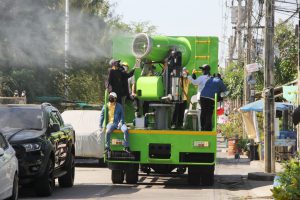 เมื่อเวลา 10.00 น.วันที่ 9 ม.ค.64 เอ๋ ชนม์สวัสดิ์ อัศวเหม ประธานหอการค้าจังหวัดสมุทรปราการ และองค์การบริหารส่วนจังหวัดสมุทรปราการ ให้การสนับสนุนน้ำยาวิน ดีซี ฆ่าเชื้อแบคทีเรีย พร้อม รถตัวหนอนพ่นไอน้ำขนาด 1,000 ลิตร และรถฉีดพ่นไอ้น้ำแรงดันสูง เจ้าหน้าที่งานทรัพยากรธรรมชาติและสิ่งแวดล้อม และงานป้องกันและบรรเทาสาธารณภัย องค์การบริหารส่วนจังหวัดสมุทรปราการ ชุดปฏิบัติการกำจัดเชื้อไวรัสโควิด-19 ลงพื้นที่หมู่ 6 ต.ท้ายบ้านใหม่ ร่วมกับ ผู้ใหญ่สมเกียรติ ทองเหลือ ผู้ใหญ่บ้าน หมู่ 6 ต.ท้ายบ้านใหม่ และ สท.ถนอมศรี ทองเหลือ สมาชิกสภาเทศบาลตำบลบางปู นำโดยนายวรพร อัศวเหม อดีตประธานสภาเทศบาลตำบลบางปู ลุยฉีดพ่นน้ำยาฆ่าเชื้อไวรัส โควิด-19 ภายในชุมชนการเคหะสมุทรปราการการ ประกอบไปด้วย ถนนเมนหลัก และตามซอย สนามกีฬา สนามเด็กเล่น ตลาดนัดการเคหะ ซอย 14 หลังแฟลต หมู่บ้านเลิศมงคลทอง หมู่บ้านรัตนากร โครงการ 3 ทั้งหมด ตลอดจน หมู่บ้านพฤกษา 59/1 – 59/2 หมู่บ้านบางปูวิลล่า ชุมชนพระยืน และซอยปลาหมึก หมู่ 7 ตำบลท้ายบ้านใหม่ ทั้งนี้ เพื่อเป็นการป้องกันและควบคุมการแพร่ระบาดของโรคติดเชื้อไวรัสโควิด-19 ในเขตพื้นที่หมู่ 6 ตำบลท้ายบ้านใหม่ และตำบลใกล้เคียง