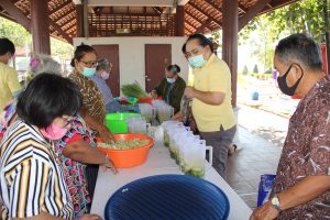 ผู้ใหญ่บ้านหมู่ 9 ตำบลบางปูใหม่ จัดโครงการฝึกอบรมให้ความรู้ในการจัดทำผลิตภัณฑ์สมุนไพร” สเปรย์ตะไคร้หอมไล่ยุง”