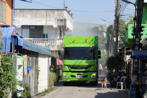สท.ถนอมศรี ทองเหลือ พร้อมรถพ่นไอ้น้ำแรงดันสูง ลุยฉีดพ่นยาฆ่าเชื้อไวรัสโควิด-19 ในเขตพื้นที่รับผิดชอบ อย่างต่อเนื่อง