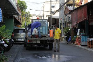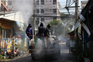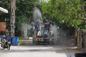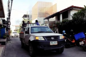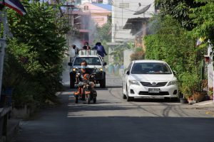 จากนั้น ได้นำรถโมบายติดตั้งถังน้ำยาวิน ดีซี ฆ่าเชื้อโรคและแบคทีเรีย และเดินเท่า ลุยฉีดพ่นยาฆ่าเชื้อโรค ตามตรอกซอกซอยต่างๆ ที่รถพ่นไอ้น้ำแรงดันสูงไม่สามารถเข้าได้ ประกอบไปด้วย ชุมชนซอยเรวัช ชุมชนซอยร่วมพัฒนา ชุมชนซอยโอ่ง และซอยสินสมบูรณ์ หมู่ 3 ต.ท้ายบ้านใหม่ ทั้งนี้ ทั้งนี้ เพื่อสร้างความมั่นใจให้กับประชาชน พร้อมทั้งประชาสัมพันธ์ ก่อนออกจากบ้านให้สวมใส่หน้ากากอนามัยหรือหน้ากากผ้า ล้างมือบ่อยๆด้วย สบู่และน้ำ หรือเจลแอลกอฮอล์ กินร้อน ช้อนกลาง การเว้นระยะห่างจากผู้อื่น เพื่อป้องกันการติดต่อสัมผัส หรือแพร่เชื้อโรคทางฝอยละอองน้ำลาย สิ่งเหล่านี้สามารถลดความเสี่ยงได้ดีที่สุดเท่าที่เราจะป้องกันตนเอง และคนที่เรารัก