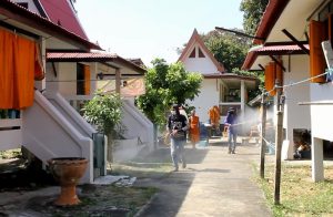 ที่วัดพุทธภาวนาราม หมู่ 3 ต.ท้ายบ้านใหม่ อ.เมืองสมุทรปราการ ผู้ใหญ่กบ ชูชาติ ดุลยปภัสศร ผู้ใหญ่บ้านหมู่.3 ต.ท้ายบ้านใหม่ พร้อมด้วย นายสมถวิล พูลเกตุ ผู้ช่วยมณฑา อ่วมโตวงษ์ ผู้ช่วยผู้ใหญ่บ้านหมู่.3 ต.ท้ายบ้านใหม่ นายวิบูลย์ เปรมานุพันธ์ สมาชิกกลุ่มสมุทรปราการก้าวหน้า นำรถโมบายติดตั้งถังน้ำยาวิน ดีซี ฆ่าเชื้อโรคและแบคทีเรีย และอุปกรณ์เครื่องพ่นยา จำนวน 3 ชุด เดินเท้าฉีดพ่นยาฆ่าเชื้อโรค บริเวณหอฉัน กุฏิพระ ห้องน้ำ ตลอดจนวัสดุ อุปกรณ์ สถานที่ ที่มีการสัมผัสของผู้มาใช้บริการร่วมกันที่อาจเป็นจุดเสี่ยง ต่อการแพร่กระจายเชื้อโรคภายในวัดพุทธภาวนาราม และบริเวณโดยรอบ