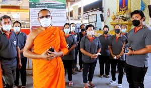 ซึ่งหลังจากเสร็จสิ้นพิธีต่างๆ แล้ว พระสงฆ์วัดศรีจันทร์ประดิษฐ์ จะนำน้ำยาฆ่าเชื้อโรคและแบคทีเรีย มาฉีดพ่นบริเวณเก้าอี้ และจุดเสียง จุดสัมผัสร่วม ภายในงาน อีกด้วย นอกจากนี้ บริเวณศาลาต่างๆ ภายในวัด ยังมีการติดตั้งเครื่องตรวจวัดอุณหภูมิ“หน้าผาก” หรือ “ข้อมือ” และป้ายขอความร่วมมือสวมใส่หน้ากากอนามัย ล้างมือก่อนเข้าศาลา อีกด้วย