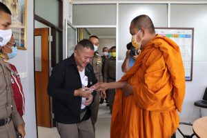 นอกจากนี้ ยังได้เมตตามอบพระเครื่องบูชาของวัดบางพลีใหญ่กลาง พร้อมกับเงินขวัญถุง จำนวน 500 บาท ให้กับเจ้าหน้าที่ตำรวจสถานีตำรวจภูธรคลองด่าน ทุกนาย เพื่อเป็นการสร้างขวัญกำลังใจในการปฏิบัติหน้าที่ของข้าราชการตำรวจ ในการดูแลพี่น้องประชาชนในช่วงสถานการณ์ ที่มีการแพร่ระบาดของเชื้อไวรัสโควิด-19 อยู่ในขณะนี้ด้วย(ขอขอบคุณ ภาพและข่าว ตั้ม สาครเคเบิลทีวี)