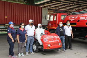 เมื่อเวลา 09.30 น.วันที่ 15 มกราคม 2564 ที่บริษัท โคมอส คอร์ปอเรชั่น จำกัด ซ.องค์การสะพานปลา ถ.ท้ายบ้าน ต.ท้ายบ้าน อ.เมืองสมุทรปราการ จากสถานการณ์การแพร่ระบาดของโรคติดต่อเชื้อไวรัสโควิด-19 ระลอกใหม่ เกิดขึ้นในพื้นที่จังหวัดสมุทรปราการ และจังหวัดใกล้เคียงอย่างต่อเนื่อง ทางบริษัท โคมอส คอร์ปอเรชั่น จำกัด นำโดย “เฮียเอี๋ยว” สุดใจ จิรยาภากร ประธานบริหาร บริษัท โคมอส คอร์ปอเรชั่น จำกัด ประธาน กก.ตร. สถานีตำรวจภูธรเมืองสมุทรปราการ และนายสิรภพ จิรยาภากร รองประธาน บริษัท โคมอส คอร์ปอเรชั่น จำกัด จึงได้ตระหนักถึงความปลอดภัยของพนักงาน และส่วนรวม โดยได้ดำเนินการนำรถตัวหนอนพ่นไอน้ำ ขนาด 400 ลิตร ลุยฉีดพ่นน้ำยาฆ่าเชื้อโรคและแบคทีเรีย บริเวณโดยรอบ บริษัท โคมอส คอร์ปอเรชั่น จำกัด ทั้งนี้ เพื่อสร้างความมั่นใจ และคุณภาพชีวิตให้แก่พนักงาน และส่วนรวม ในการป้องกันและควบคุมการแพร่ระบาดของโรคติดต่อเชื้อไวรัสโควิด-19
