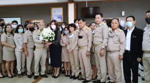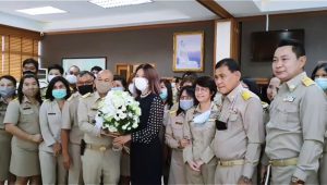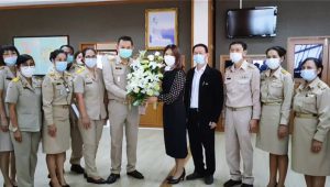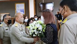 ปลัด อบจ.สมุทรปราการ นำคณะผู้บริหาร และข้าราชการ อบจ.สมุทรปราการ มอบกระเช้าดอกไม้ ต้อนรับ นายก อบจ.สมุทรปราการ คนใหม่ ณ สำนักงาน อบจ.สมุทรปราการ