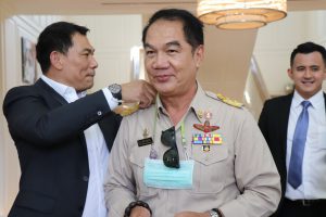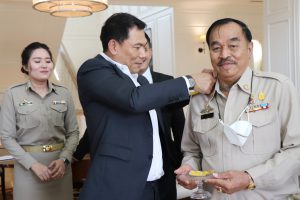 ประธานสภา อบจ.สมุทรปราการ นำสมาชิกสภา เข้าพบนายชนม์สวัสดิ์ หัวหน้ากลุ่มสมุทรปราการก้าวหน้า ทำการประดับขีดเพื่อเป็นขวัญและกำลังใจในกาสานต่อนโยบาย 20 ปี สมุทรปราการก้าวหน้า เปลี่ยนแปลงต่อเนื่อง