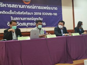 ศูนย์บริหารสถานการการแพร่ระบาดของโรคติดเชื้อไวรัสโคโรนา 2019 จังหวัดสมุทรปราการ นายวันชัย คงเกษม ผู้ว่าราชการจังหวัดสมุทรปราการ เป็นประธานแถลงข่าวสถานการณ์โรคติดเชื้อไวรัสโคโรนา 2019(COVID-19) ในพื้นที่ โดยมีนายแพทย์พรณรงค์ ศรีม่วง นายแพทย์สาธารณสุขจังหวัดสมุทรปราการ นางนิภาพร ทองหล่อ คลังจังหวัดสมุทรปราการ และนายแพทย์นนท์ จินดาเวช รองนายแพทย์สาธารณสุขจังหวัดสมุทรปราการ ร่วมแถลงข่าว ในครั้งนี้