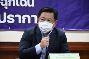 ผู้ว่าราชการจังหวัดสมุทรปราการ พร้อมด้วยหน่วยงานที่เกี่ยวข้องแถลงข่าว เรื่องสถานการณ์และการดำเนินการแก้ไขปัญหาโรคติดเชื้อไวรัสโคโรนา 2019 จังหวัดสมุทรปราการ ครั้งที่ 14