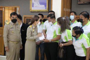 คณะผู้บริหาร หัวหน้าส่วนราชการ และผู้แทนจากองค์กร ต่างๆ เดินทางมามอบกระเช้าดอกไม้ ร่วมแสดงความยินดีกับนายก อบจ.สมุทรปราการ คนใหม่ หลังจากเปิดสมัยประชุมสภา อบจ.สมุทรปราการ สมัยสามัญ สมัยที่ 1