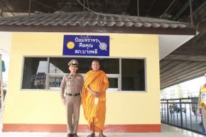 ”พระครูแจ้”ได้ฤกษ์เปิดป้ายที่ทำการ “ป้อมจราจร ศีลคุณ สภ.บางพลี” หลังเมตตาบูรณะซ่อมแซมให้ใหม่