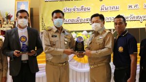 อำเภอเมืองสมุทรปราการ จัดกิจกรรมวันคณะกรรมการหมู่บ้าน (กม.) ประจำปีงบประมาณ 2564 และพิธีการมอบโล่รางวัลเกียรติยศ ของรัฐมนตรีว่าการกระทรวงมหาดไทยให้แก่หมู่บ้านที่ได้รับรางวัลชนะเลิศระดับเขตตามโครงการคัดเลือกหมู่บ้านเข้มแข็ง ตามแนวทาง “แผ่นดินธรรม แผ่นดินทอง” (หมู่บ้านอยู่เย็น) ประจำปี 2563