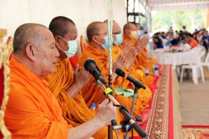 โดยมี ครอบครัวรุ่งเรือง ดร.วีร์สุดา รุ่งเรือง ประธานชมรมกำนันผู้ใหญ่บ้าน ต.บางพลีใหญ่ ประธานสโมสร BPR บางพลีรุ่งเรือง นายฉะโอด รุ่งเรือง นายก อบต.บางพลีใหญ่ พร้อมด้วย ข้าราชการตำรวจภูธรจังหวัดชลบุรี ข้าราชการตำรวจ สภ.บางพลี และกลุ่มผู้นำชุมชย ร่วมกันถวายภัตตาหารเพล และจตุปัจจัยเครื่องไทยธรรม แด่พระสงฆ์ พระสงฆ์ให้ศีล กรวดน้ำ รับพร พระสงฆ์อนุโมทนา พระครูปลัดสุวัฒนศีลคุณ (พระครูแจ้) เจ้าอาวาสวัดบางพลีใหญ่กลาง ประพรมน้ำพระพุทธมนต์ เพื่อความเป็นสิริมงคล