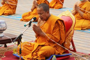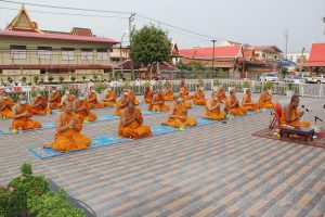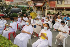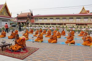 เจ้าอาวาสวัดบางพลีใหญ่กลาง นำคณะพระภิกษุสงฆ์ สวดปาฏิโมกข์บทสวดธัมมจักกัปปวัตนสูตร เนื่องในวันพระแรม 15 ค่ำ เดือน 4