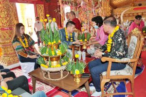โดยมี การจัดตั้งกองผ้าป่า จากที่บ้านพักและมีขบวนแห่ไปยังบริเวณวัด ถวายภัตตาหารเพลแด่พระภิกษุสงฆ์ สามเณร และมีพิธีการบายศรีสู่ขวัญแบบล้านนา พร้อมกันนี้คณะยังได้เยี่ยมชมความสวยงานและธรรมชาติของทางวัดซึ่งมีถ้ำและตาน้ำ และจุดชมวิวที่สวยงาม และยังคงรักษาความเป็นธรรมชาติที่ดีอีกด้วย