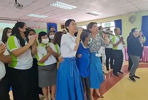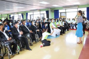 จากนั้น นางสาวนันทิดา แก้วบัวสาย นายกองค์การบริหารส่วนจังหวัดสมุทรปราการ และ(น้องเพลง) นางสาวชนม์ทิดา อัศวเหม เลขานุการนายก อบจ. ได้นำคณะผู้บริหาร สมาชิกสภา อบจ.สมุทรปราการ และหม่อมหลวงสกุล มาลากุล สมาชิกวุฒิสภา ร่วมร้องเพลง “ขอเป็นคนหนึ่ง” และ “ขอมือเธอหน่อย” สร้างขวัญ และกำลังใจ ให้แก่คนพิการ ที่มาร่วมให้การต้อนรับ ด้วยบรรยากาศที่เป็นกันเอง สร้างรอยยิ้ม และความอบอุ่น ให้กับผู้ที่มาร่วมงานเป็นอย่างมาก