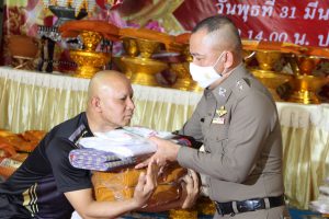 สมเด็จพระอริยวงศาคตญาณ สกลมหาสังฆปริณายก เมตตา ประธานผ้าไตร ในงานบรรพชาอุปสมบทหมู่ ณ วัดบางพลีใหญ่กลาง