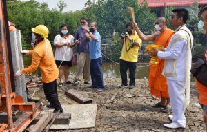 วัดศรีจันทร์ประดิษฐ์ ประกอบพิธีบวงสรวง ตอกเสาเข็มฐานตั้งองค์พญานาค แลนด์มาร์กแห่งใหม่ของจังหวัดสมุทรปราการ