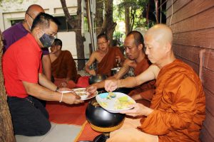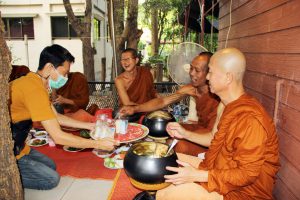 เมื่อเวลา 07.30 น.วันที่ 18 เม.ย.64 ที่ กุฏิพระอาจารย์วรพล วัดอโศการาม ตำบลท้ายบ้าน อำเภอเมืองสมุทรปราการ ครอบครัวไชยพัชรีกรณ์ พร้อมด้วย สมาชิกกลุ่ม 80 ฅน ปากน้ำ และกัลยาณมิตร ร่วมพิธีทำบุญตักบาตรฉลองพระบวชใหม่ หลังเสร็จสิ้นการอุปสมบท พระธนิตพงศ์ ธมฺมาลโย เลขานุการ กลุ่ม 80 ฅน ปากน้ำ ผู้บริหาร บริษัท อู่ เจ.เค.คาร์ เซอร์วิส (2016) จำกัด ตามประเพณี ก่อนเข้าศึกษาธรรมมะ ปฏิบัติในศีลธรรม หลักคำสอนของพระสัมมาสัมพุทธเจ้า โดยบรรยากาศภายในงาน พระธนิตพงศ์ ธมฺมาลโย ได้จุดธูปเทียนบูชาพระรัตนตรัย และตักบาตรข้าวสวย ขนมเปี๊ยะ ไข่เค็ม และส้ม ลงในบาตรที่จัดเตรียมไว้ โดยมี พระภิกษุสงฆ์ จากวัดอโศการาม จำนวน 9 รูป เจริญพระพุทธมนต์