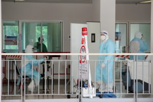 นอกจากนี้ ยังมีคนไข้ อีกประมาณ 30 คน ที่ยังรอเตียงอยู่ เนื่องจากว่าต้องเคลียเตียงจากผู้ป่วยในโรงพยาบาล เพื่อนำมาที่แห่งนี้ สำหรับ แนวทาง (หอผู้ป่วยเฉพาะกิจ รพ.สมุทรปราการ) แห่งนี้ จะรับคนไข้ที่เป็นคนไข้ สเต็ปดาว จากโรงพยาบาล ซึ่งคนไข้โควิด ทุกคน เราอยากรับเข้าไปที่โรงพยาบาลก่อน แล้วถ้าผ่านไป 48 ชั่วโมง อายุน้อยกว่า 60 ปี ระดับอ็อกซิเจนในเลือดดี และไม่มีอาการปอดบวม เราจะ สเต็ปดาว เอามาไว้ที่แห่งนี้ต่อ เพื่อความปลอดภัยของตัวผู้ป่วยเอง แต่พอถึงจุดๆ หนึ่งอาจจะเอาไม่อยู่ หากมีปริมาณคนไข้เยอะ เราก็จะต้องรับคนไข้ใหม่ โดยเราจะต้องคัดคนไข้ที่ไม่มีปอดบวม อายุไม่เกิน 50 ปี มีการประเมินสภาพจิต เพื่อดูว่ามีความพร้อมที่จะมาอยู่ในสถานที่นี้ ซึ่งเราไม่สามารถดูแลได้ใกล้ชิดเหมือนกับที่อยู่ในโรงพยาบาล