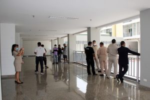 เมื่อเวลา 14.00 น.วันที่ 19 เม.ย.64 นายแพทย์นำพล แดนพิพัฒน์ ผู้อำนวยการโรงพยาบาล นำคณะผู้บริหาร อบจ.สมุทรปราการ หม่อมหลวง สกุล มาลากุล สมาชิกวุฒิสภา และคณะสื่อมวลชนเข้าชม Hospitel (หอผู้ป่วยเฉพาะกิจ รพ.สมุทรปราการ) ณ อาคารหอพักชาย-หญิง มหาวิทยาลัยราชภัฏ ธนบุรี สมุทรปราการ ต.บางปลา อ.บางพลี จ.สมุทรปราการ เพื่อประชาสัมพันธ์ ถึงความพร้อมในการรับมือโควิด-19 โดยปรับอาคารหอพักชาย-หญิง มหาวิทยาลัยราชภัฏ ธนบุรี สมุทรปราการ เป็นโรงพยาบาลสนาม ประมาณ 100 ห้อง หนึ่งห้องอยู่ได้ 2-4 คน ดังนั้น โรงพยาบาลสนาม แห่งนี้ สามารถรองรับคนไข้ได้ถึง 400 คน ซึ่งขณะนี้ได้รองรับคนไข้แล้ว 161 คน และในจำนวนนี้ มีห้องที่ใช้สำหรับกักตัวผู้ที่สัมผัสโรคที่มีความเสียงสูง ก็คือกลุ่มเจ้าหน้าที่ของโรงพยาบาล ได้แก่ พยาบาล ผู้ช่วยเหลือคนไข้ และคนขับรถ ที่ไปสัมผัสคนไข้ที่เป็นโควิด และเข้าไปดูแล โดยที่ผู้ป่วยไม่ได้ระบุชัดว่าเป็น จึงต้องกังตัวไว้