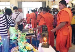 วัดตำหรุ จัดพิธีทำบุญตักบาตร สวดมาติกาบังสุกุล ก่อพระเจดีย์ทราย สืบสารวัฒนธรรมประเพณีสงกรานต์ ประจำปี 2564