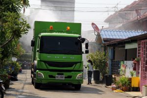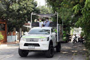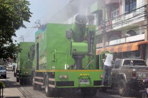 ประธานสภาองค์การบริหารส่วนจังหวัดสมุทรปราการ นำรถฉีดพ่นไอน้ำแรงดันสูง ลุยฉีดพ่นยาฆ่าเชื้อไวรัสโควิด-19 ในเขตพื้นที่หมู่ 3 ตำบลบางปูใหม่