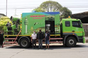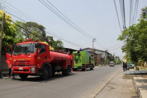 เมื่อเวลา 11.00 น.วันที่ 24 เม.ย.64 กำนันตึ๊ง ไพบูลย์ พินเที่ยง ประธานกำนันผู้ใหญ่บ้านจังหวัดสมุทรปราการ “กำนันยอดเยี่ยมระดับประเทศ ปี 62” พร้อมด้วย ผู้ใหญ่ธนาวุฒิ อภิญญาสถาพร ผู้ใหญ่บ้านหมู่ 1 ตำบลท้ายบ้าน และผู้ช่วยธนิศร อภิญญาสถาพร หมู่ 1 ตำบลท้ายบ้าน ประสานความร่วมมือ ไปยังองค์การบริหารส่วนจังหวัดสมุทรปราการ นำโดย นางสาวนันทิดา แก้วบัวสาย นายกองค์การบริหารส่วนจังหวัดสมุทรปราการ ส่งมอบรถฉีดพ่นไอ้น้ำแรงดันสูง จำนวน 1 คัน พร้อมด้วย เจ้าหน้าที่งานป้องกันและบรรเทาสาธารณภัย เจ้าหน้าที่งานทรัพยากรธรรมชาติและสิ่งแวดล้อม องค์การบริหารส่วนจังหวัดสมุทรปราการ ลงพื้นที่หมู่ 1 ตำบลท้ายบ้าน ลุยฉีดพ่นยาฆ่าเชื้อไวรัสโควิด-19 ระลอกใหม่ ตามเส้นทางหลัก และซอยย่อยภายในชุมชนซอย กม.30 สมาคมหนังสัตว์ และชุมชนซอยประชา ตำบลท้ายบ้าน อำเภอเมืองสมุทรปราการ เพื่อเป็นการสกัดและยับยังการแพร่ระบาดของเชื้อไวรัสโควิด-19 ให้ครอบคลุมทั้งชุมชน สร้างความมั่นใจ และความปลอดภัยให้กับพี่น้องประชาชน โดยได้รับการสนับสนุนน้ำยาวิน ดีซี ฆ่าเชื้อโรคและแบคทีเรีย จากนายชนม์สวัสดิ์ อัศวเหม ประธานหอการค้าจังหวัดสมุทรปราการ
