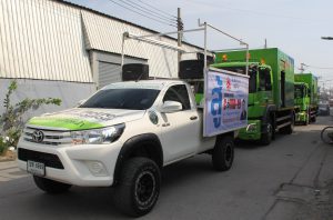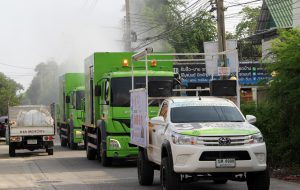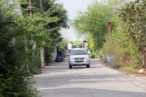 ผู้ใหญ่นิรุต บุญมาก นำรถฉีดพ่นไอ้น้ำแรงดันสูง ลุยฉีดพ่นยาฆ่าเชื้อและแบคทีเรียในเขตพื้นที่หมู่ 1 ตำบลบางปูใหม่