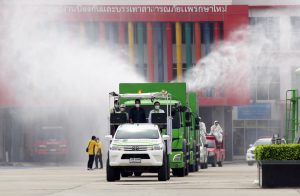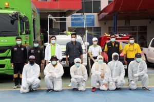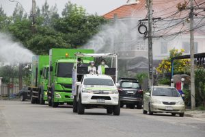 อบจ.สมุทรปราการ ประสานความร่วมมือกับองค์กรปกครองส่วนท้องถิ่น ปล่อยขบวนรถฉีดพ่นน้ำยาฆ่าเชื้อโควิด-19 ในเขตพื้นที่ 11 อำเภอเมืองสมุทรปราการ