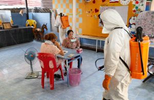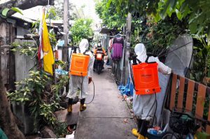 เมื่อวันที่ 4 พ.ค.64 จากความรักแลความห่วงใยของท่านชนม์สวัสดิ์ อัศวเหม ประธานหอการค้าจังหวัดสมุทรปราการ และคุณตู่ นันทิดา แก้วบัวสาย นายกองค์การบริหารส่วนจังหวัดสมุทรปราการ ส่งต่อความห่วงใยพี่น้องประชาชนอย่างต่อเนื่อง โดยประสานความร่วมมือกับ นางประภาพร อัศวเหม นายกเทศมนตรีนครสมุทรปราการ จัดส่งทีมร่วมสู้โควิด-19 ทั้งเจ้าหน้าที่กองสาธารณสุขและสิ่งแวดล้อม และเจ้าหน้าที่งานป้องกันและบรรเทาสาธารณภัยเทศบาลนครสมุทรปราการ ลงพื้นที่เดินเท้าลุยฉีดพ่นยาฆ่าเชื้อโรคและแบคทีเรีย บริเวณจุดที่มีประชาชนสัญจร ซึ่งรถไม่สามารถเข้าถึงได้ อาทิ เช่น ศาลเจ้าพ่อหลักเมือง, มัสยิด, ซอยย่อยต่างๆ ของชุมชน, สถานที่สาธารณะที่เป็นจุดเสี่ยง