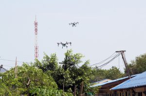 นางสาวนันทิดา แก้วบัวสาย นายกองค์การบริหารส่วนจังหวัดสมุทรปราการ ประสานความร่วมมือกับ นายสมควร ชูไสว ประธานสภาองค์การบริหารส่วนจังหวัดสมุทรปราการ นำโดรน เพื่อการเกษตร Booneรุ่น DR10,16 เที่ยวบินอัจฉริยะ ควบคุมด้วยระบบดิจิตอล จำนวน 2 ลำ ลุยฉีดพ่นยาฆ่าเชื้อไวรัสโควิด-19 ทางอากาศ พร้อมด้วย เจ้าหน้าที่งานป้องกันและบรรเทาสาธารณภัย เจ้าหน้าที่งานทรัพยากรธรรมชาติและสิ่งแวดล้อม องค์การบริหารส่วนจังหวัดสมุทรปราการ ลงพื้นที่ชุมชนหมู่ 7 หมู่ 3 และหมู่ 2 ตำบลบางปูใหม่ บริเวณพื้นที่ ที่รถพ่นไอน้ำแรงดันสูง และรถตัวหนอนพ่นไอน้ำ ไม่สามารถเข้าถึง ประกอบไปด้วย ชุมชนซอยมูลนิธิธรรมกตัญญู (เสียนหลอไต้เทียนกง) ชุมชนหมู่บ้านบางปูแลนด์ แคมป์คนงานภายในชุมชนซอยนวลเนตร และชุมชนคลองคอต่อฝั่งน้ำเค็ม ซอยวัดศรีจันทร์ประดิษฐ ทั้งนี้ เพื่อเป็นการสกัดและยับยังการแพร่ระบาดของเชื้อไวรัสโควิด-19 ระลอก 3 ให้ครอบคลุมทั่วทั้งตำบล ภายใต้การสนับสนุน จากนายชนม์สวัสดิ์ อัศวเหม ประธานหอการค้าจังหวัดสมุทรปราการ