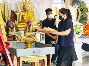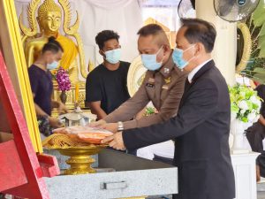 วันที่ 9 พ.ค.64 เวลา 16.00 น ที่วัดหลวงพ่อเต่า หรือ วัดธรรมคุณาราม บางขุนเทียน กรุงเทพฯ พิม อัศวเหม สมาชิกสภาองค์การบริหารส่วนจังหวัดสมุทรปราการ อำเภอพระสมุทรเจดีย์ เป็นตัวแทน นายชนม์สวัสดิ์ อัศวเหม ประธานหอการค้าจังหวัดสมุทรปราการ เป็นประธานในพิธีฌาปนกิจศพ เด็กชายสุริยะ สังเวียน ซึ่งจมน้ำเสียชีวิตจากเหตุพายุเข้าฝั่ง อ.พระสมุทรเจดีย์ เมื่อวันที่ 6 พ.ค. 64 ที่ผ่านมา โดยได้รับเกียรติจาก นายประชา ประสพดี อดีตรัฐมนตรีช่วยว่าการกระทรวงมหาดไทย พร้อมด้วย พันตำรวจเอกธนูเพ็ชร ฉมาฤกษ์ ผู้กำกับการสถานีตำรวจภูธรสาขลา นางนันทวรรณ ประสพดี ที่ปรึกษาคณะกรรมาธิการติดตามการบริหารงบประมาณสภาผู้แทนราษฎร นางประภาพร อัศวเหม นายกเทศมนตรีนครสมุทรปราการ นายสมลักษณ์ ควรสงวน รองนายกองค์การบริหารส่วนจังหวัดสมุทรปราการ นายสมหวัง เกษมโกสินทร์ เลขานุการนายกองค์การบริหารส่วนจังหวัดสมุทรปราการ นายชาตรี อ่วมสอาด นายกองค์การบริหารส่วนตำบลนาเกลือ นางภิรมย์ อ่วมสอาด ผู้ใหญ่บ้าน หมู่ 3 ตำบลนาเกลือ กำนันชัยวัฒน์ อ่วมสอาด กำนันตำบลนาเกลือ สจ.ทิพวรรณ นิ่มนวล สจ.เบ็ญจวรรณ จารุเพ็ญพูลผล, สจ.วลัยพร บานแย้ม ( สมาชิกสภาองค์การบริหารส่วนจังหวัดสมุทรปราการ )