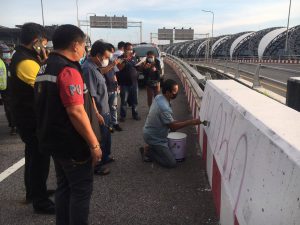 ท่าอากาศยานสุวรรณภูมิร่วมกับศูนย์ปฏิบัติการพิเศษ ทอท. กองกำกับการ 3 กองบังคับการตำรวจท่องเที่ยว และ สถานีตำรวจภูธรท่าอากาศยานสุวรรณภูมิ จับกุมผู้ต้องหาพ่นสีแนวกั้นถนนทางยกระดับสาย 1 (ขาออกท่าอากาศยานสุวรรณภูมิ)