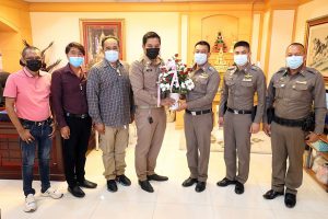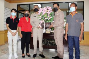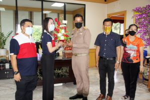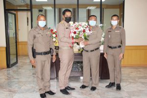 ข้าราชการตำรวจ คณะผู้บริหารเทศบาลฯ มอบกระเช้าดอกไม้ ร่วมแสดงความยินดีนายกเทศมนตรีเทศบาลเมืองใหม่แพรกษา