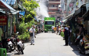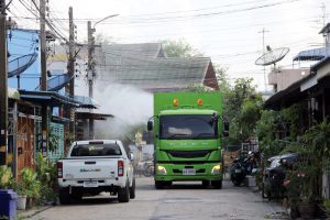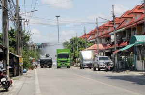 อบจ.สมุทรปราการ ร่วมกับ เทศบาลนครสมุทรปราการ ส่งรถพ่นไอน้ำแรงดันสูง ฉีดพ่นน้ำยาฆ่าเชื้อโควิด-19 ชุมชนคลองตะเค็ดฝั่งตะวันออก