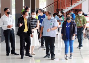 เมื่อเวลา 08.30 น.วันที่ 7 มิ.ย.64 นายวันชัย คงเกษม ผู้ว่าราชการจังหวัดสมุทรปราการ พร้อมด้วย นายแพทย์พรณรงค์ ศรีม่วง นายแพทย์สาธารณสุขจังหวัดสมุทรปราการ และคณะหัวหน้าส่วนราชการ ลงพื้นที่ตรวจเยี่ยมจุดบริการฉีดวัคซีนนอก รพ. “หน่วยความร่วมมือบริการฉีดวัคซีนโควิด-19 วันนี้ เป็นวันแรกที่มีการเปิดให้ประชาชนเข้ารับการฉีดวัคซีน หลังจากเปิดให้ลงทะเบียนผ่าน ระบบหมอพร้อมไว้ ตั้งแต่วันที่ 7-20 มิถุนายน 2564 เฉพาะในเขตพื้นที่อำเภอเมือง จุดบริการฉีดวัคซีนโควิด-19 บริเวณหอประชุมศุนย์ประชุมซีคอมเพล็กซ์ เทศบาลตำบลบางปู อำเภอเมือง จังหวัดสมุทรปราการ โดยกำหนดเป้าไว้ที่ 4,620 โดส ต่อวัน โดยมีโรงพยาบาลสมุทรปราการ เป็นหลัก