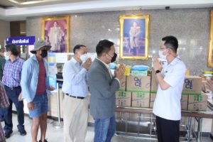 หลังจากนั้นเดินไปยังสถานีตำรวจภูธรบางแก้ว เพื่อมอบหน้ากากอนามัยจำนวน 20 กล่อง ถุงมือยาง 10 กล่อง 500 คู่ ให้กับสถานีตำรวจภูธรบางแก้ว โดยมีพันตำรวจเอก มงคล อ่อนแก้ว ผกก.สภ.บางแก้ว เป็นตัวแทนรับมอบ