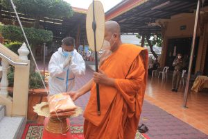 โดยพระครูปลัดสุวัฒนศีลคุณ”พระครูแจ้” เป็นองค์ประธานในพิธีฝ่ายสงฆ์ และ พ.ต.อ.ชูตระกูล ยศมาดี รอง ผบก.ภ.จว.สมุทรปราการ ให้เกียรติเป็นประธานทอดผ้าไตรและวางดอกไม้จันท์ ฝ่ายฆราวาส และกดปุ่มจุดไฟเตาเผาพร้อมตัวแทนญาติ 1คน ณ เมรุวัดบางพลีใหญ่กลาง มี พยบาลจากโรงพยาบาลบางพลีข้าราชการตำรวจ สภ.บางพลี คอยเฝ้าสังเกตการณ์ดูความเรียบร้อย โดยเจ้าหน้าที่วัดและเจ้าหน้าที่เมรุสวมใส่ชุด PPEเพื่อป้องกันโรคโดยเจ้าหน้าที่มูลนิธิร่วมกตัญญูพ่นยาฆ่าเชื้อไปทั่วทั้งพื้นที่และได้ลำเลียงศพขึ้นเตาเผาอย่างมิดชิด(ขอขอบคุณ ภาพและข่าว แลมพาร์ดโพสต์นิวส์)