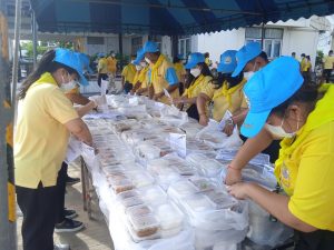 เมื่อเวลา 10.30 น.ของวันที่ 28 กรกฎาคม 2564 ที่ บริเวณลานจอดรถด้านหน้าที่ว่าการอำเภอพระสมุทรเจดีย์ ต.แหลมฟ้าผ่า อ.พระสมุทรเจดีย์ จ.สมุทรปราการ นายจารุวัฒน์ วงศ์จอม นายอำเภอพระสมุทรเจดีย์ ร่วมประกอบอาหารแจกจ่ายให้กับครัวเรือนและประชาชนกลุ่มเสี่ยงสูงในพื้นที่อำเภอพระสมุทรเจดีย์ 5 ตำบลจำนวน 600 คน ซึ่งกักตัวสังเกตอาการภายในบ้านเป็นเวลา 14 วันและไม่สามารถดำเนินชีวิตประจำวันได้ตามปกติทำให้ขาดแคลนอาหาร โดยมี นางสาวไพลิน เทียนสุวรรณ สมาชิกสภาผู้แทนราษฎร เขต 7 จังหวัดสมุทรปราการ นางแพรว วงศ์จอม รองประธานแม่บ้านมหาดไทยจังหวัดสมุทรปราการ พ.ต.อ.เอนก สระทองอยู่ ผกก.สภ.พระสมุทรเจดีย์ พ.ต.อ.ธนูเพ็ชร ฉมากฤษ์ ผกก.สภ.สาขลา นางพิทยา จันทร์จีน กำนัน ต.ในคลองบางปลากด ผู้ใหญ่บ้าน ผู้ช่วยผู้ใหญ่บ้าน สารวัตรกำนัน ผู้นำชุมชนและประชาชน เข้าร่วมช่วยกันบรรจุอาหารใส่ถุงก่อนมอบให้กับตัวแทนแต่ละพื้นที่ออกแจกจ่ายให้ถึงมือผู้กักตัว เพื่อถวายเป็นพระราชกุศลแด่พระบาทสมเด็จพระปรเมนทรรามาธิบดีศรีสินทรมหาวชิราลงกรณ พระวชิรเกล้าเจ้าอยู่หัว เนื่องในโอกาสวันเฉลิมพระชนมพรรษา 69 พรรษา 28 ก.ค.64 ซึ่งการจัดโรงครัวในครั้งนี้ได้รับการสนับสนุนรถโรงครัวจากกรมป้องกันและบรรเทาสาธารณภัยเขต 1 จังหวัดปทุมธานี