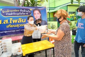 เมื่อวันที่ 30 กรกฎาคม 2564 ส.ส.ไพลิน เทียนสุวรรณ สมาชิกสภาผู้แทนราษฎร เขต 7 สมุทรปราการและทีมงาน ลงพื้นที่ หมู่2 ต.บางจาก อ.พระประแดง จ.สมุทรปราการ นำข้าวกล่องโครงการ ข้าวล้านกล่อง ปันล้านใจ โดยท่าน พล.อ.ประวิตร วงษ์สุวรรณ หัวหน้าพรรคพลังประชารัฐ จำนวน 300 กล่อง มอบให้กับชาวบ้านในพื้นที่และผู้ที่ได้รับผลกระทบจากการกักตัว ได้นำไปรับประทาน