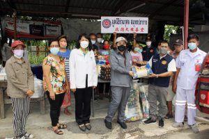 เมื่อเวลา 12.00 น.วันที่ 3 ส.ค.64 มูลนิธิร่วมกุศล สมุทรปราการ นำโดย นายเอนกพงศ์ คูณทรัพย์สิน ประธานมูลนิธิร่วมกุศล สมุทรปราการ ได้มอบหมายให้ นางสาวปิยนุช พานิชย์พิศาล รองประธาน ฝ่ายกิจกรรมมูลนิธิร่วมกุศล สมุทรปราการ และเจ้าหน้าที่อาสาสมัครมูลนิธิร่วมกุศล สมุทรปราการ ลงพื้นที่ชุมชน หมู่ 5 ต.ท้ายบ้านใหม่ นำเครื่องอุปโภค บริโภค ประกอบไปด้วย ข้าวสาร บะหมี่กึ่งสำเร็จรูป ปลากระป๋อง ไข่ไก่ และวัตถุดิบปรุงรส ให้กับ ผู้ใหญ่เชาว์ สิทธิ์ปกรณ์ จุลแก้ว ผู้ใหญ่บ้านหมู่ 5 ต.ท้ายใหม่ ที่บริเวณครัวหมู่บ้าน ศูนย์รวมใจชาวหมู่ 5 ต.ท้ายบ้านใหม่ อ.เมืองสมุทรปราการ