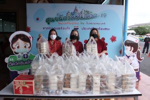 เมื่อเวลา 10.00 น.ของวันที่ 6 สิงหาคม 2564 นางรัตตินันท์ ลีนะไตรสรณ์ กรรมการผู้จัดการ บริษัท สิริมงคล 59 จำกัด/กต.ตร.จังหวัดสมุทรปราการ และกต.ตร.สภ.บางพลี พร้อมนายธงชัย อัศวสุขี กรรมการผู้จัดการ บริษัทเอ็กซ์ตร้า สตีลไพล์ แอนด์ ดีเวลลอปเม้นท์ จำกัด และนางระเบียบ เพ็ชรหวน กรรมการผู้จัดการ บริษัท กม.15 ปูนทราย นำภัตตาหารเพลถวายแด่ “พระครูแจ้”พระครูปลัดสุวัฒนศีลคุณ เจ้าอาวาสวัดบางพลีใหญ่กลาง พร้อมนำข้าวกล่องปรุงสุก จำนวน 300 กล่อง พร้อมขนมบัวลอย มอบให้กับแพทย์ พยาบาล บุคคลากรทางการแพทย์ ผู้ปฎิบัติงานที่โรงพยาบาลบางพลี และศูนย์ฉีดวัคซีนโควิค-19 วัดบางพลีใหญ่กลาง เพื่อเป็นขวัญกำลังในการฎิบัติงานต่อไป โดยมี นายแพทย์ พิเชษฐ พัวพันกิจเจริญ ผู้อำนวยการโรงพยาบาลบางพลี พยาบาล เป็นตัวแทนรับมอบครั้งนี้