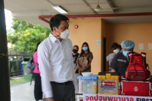 เมื่อเวลา 08.00 น.วันที่ 13 สิงหาคม 2564 นายณัฐพงศ์ แตงสุวรรณ นายกเทศมนตรีเมืองบางแก้ว พร้อมด้วยนายบวรวิทย์ พึ่งทอง ประธานสภาองค์การบริหารส่วนตำบลบางแก้ว เข้ามาตรวจเยี่ยมและคอยอำนวยความสะดวกให้กับประชาชนที่เดินทางเข้ามารับการฉีดวัคซีน”ซิโนฟาร์ม” ในวันแรกบริเวณสถานที่ฉีดวัคซีนที่ตั้งอยู่ภายในโรงเรียนสาธิตบางแก้ว ใกล้กับอาคารสำนักงานเทศบาลเมืองบางแก้ว โดยมีประชาชนในกลุ่มแรกที่ได้รับข้อความทางโทรศัพท์มือถือคือกลุ่มนักศึกษาและก็พระสงฆ์ ต่างทยอยเดินทางเข้ามารับการฉีดวัคซีนตามรอบที่ทางเทศบาลกำหนดไว้ให้