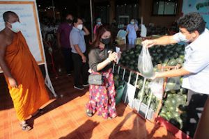 อย่างไรก็ตาม ผลไม้ทั้งหมดที่ช่วยเกษตรกรอุดหนุนมานั้น จะนำไปแจกจ่ายให้กับผู้ป่วยตามโรงพยาบาลต่างๆ โรงพยาบาลสนาม รวมถึงบุคลากรทางการแพทย์ ข้าราชการตำรวจและพี่น้องประชาชนในชุมชน อีกทั้ง ยังเป็นการแสดงออกถึงความรักและความห่วงใยที่มีต่อพี่น้องเกษตรกรชาวสวนและจะนำผลผลิตทั้งหมดแจกจ่ายให้กับพี่น้องประชาชนที่เดินทางมารับการฉีดวัคซีนในวันนี้แต่จะทำการแจกทุกๆวัน จนกว่าผลไม้ที่สั่งมานั้นจะหมดเพื่อแทนความห่วงใยที่มีต่อบุคลากรทางการแพทย์ที่ยังคงปฎิบัติหน้าที่อย่างเหน็ดเหนื่อย รวมถึงประชาชนที่เดือดร้อน ประชาชนที่ขาดรายได้ในสถานการณ์การแพร่ระบาดของเชื้อไวรัสโควิด-19