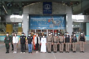 กอ.รมน.จว.สมุทรปราการ ลงพื้นศูนย์การค้าอิมพิเรียเวิล์ด สำโรง เพื่อตรวจสอบ การปฏิบัติตามมาตรการต่างๆ ภายในห้างสรรพสินค้าหรือสถานบริการที่มีผู้ใช้บริการจำนวนมาก ถึงมาตรการในการควบคุมการแพร่ของเชื้อโควิด-19